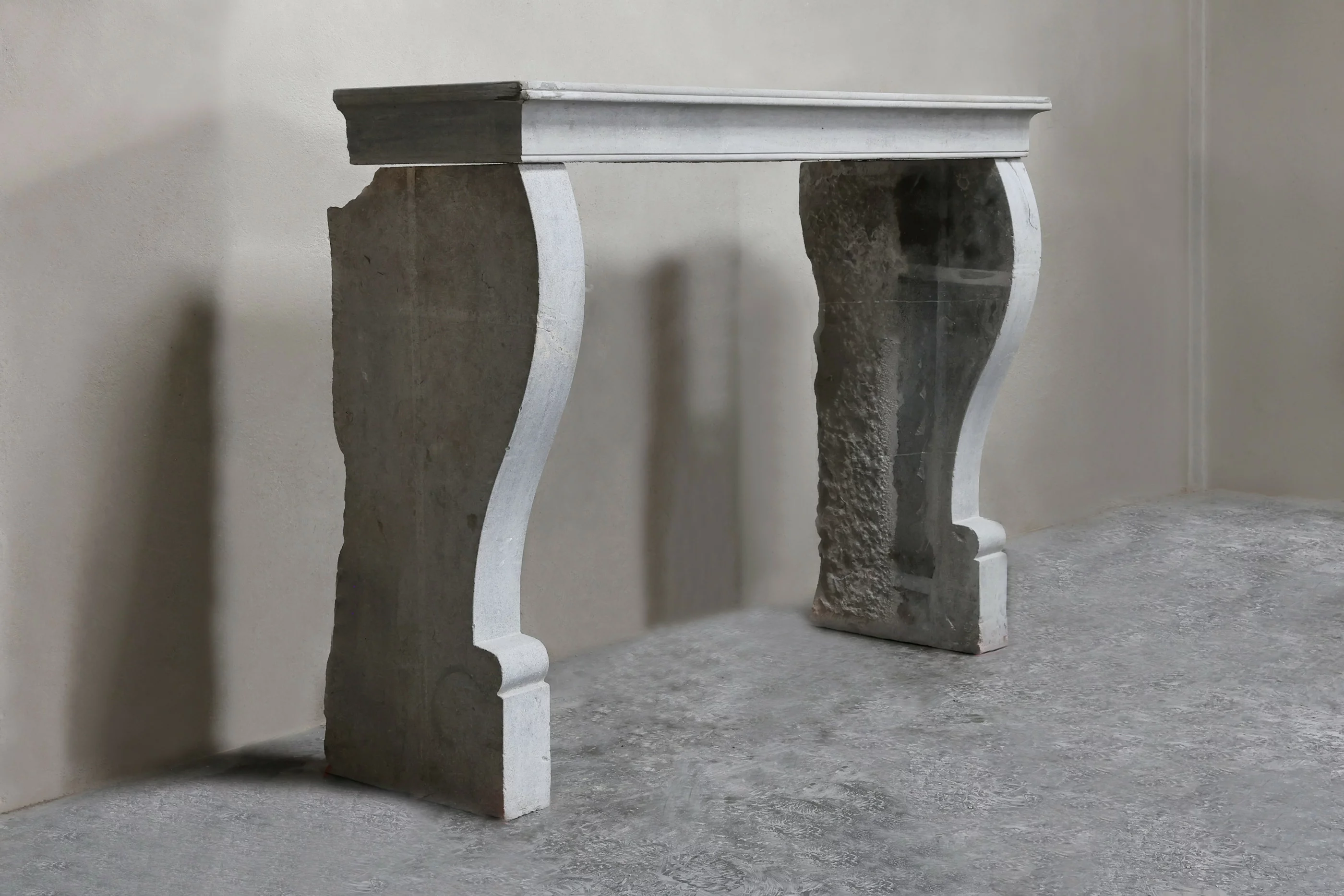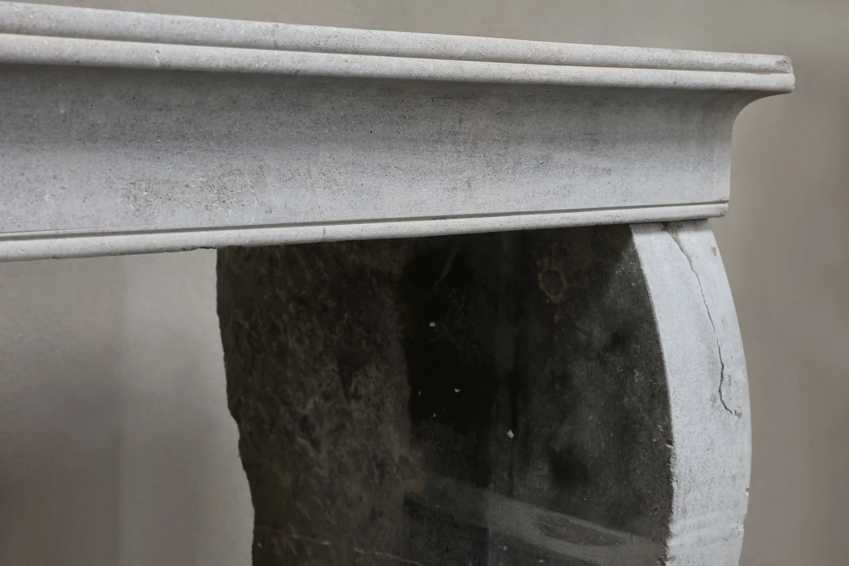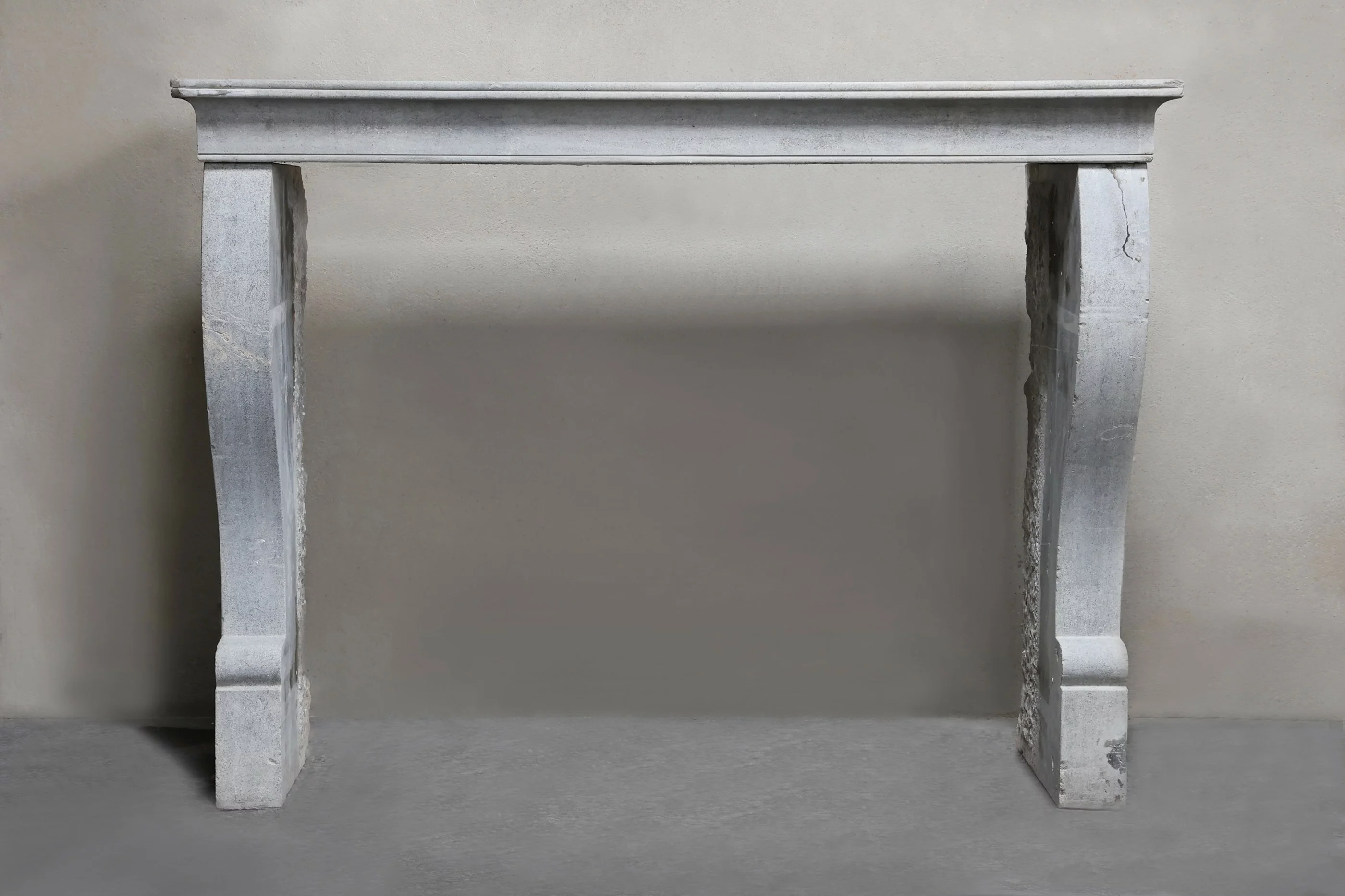 Mooie rustieke schouw uit de 19e eeuw in een warme grijze kleurstelling. Deze antieke mantel is in Campagnarde stijl en heeft mooie belijningen en licht gebogen benen! Qua formaat is dit een open haard die in vele interieurs toepasbaar is door het compacte formaat.