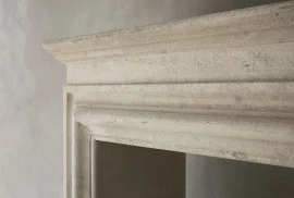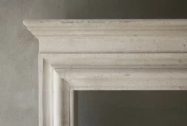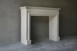 Fraaie handgekapte schouw van franse kalksteen, ook wel Pierre de Bourgogne genoemd. Deze steensoort wordt vaak gebruikt bij handgekapte schouwen. Onze franse steenkappers kunnen deze schouw op elk gewenst formaat maken. Vraag naar de mogelijkheden voor een op maat gemaakte schouw.