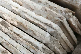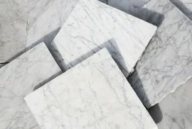 De randen zijn nog schuin bekapt, waardoor je goed kunt zien hoe oud deze vloer is. Deze oude marmeren vloer kenmerkt zich door een mooie schakering van wit-tinten.