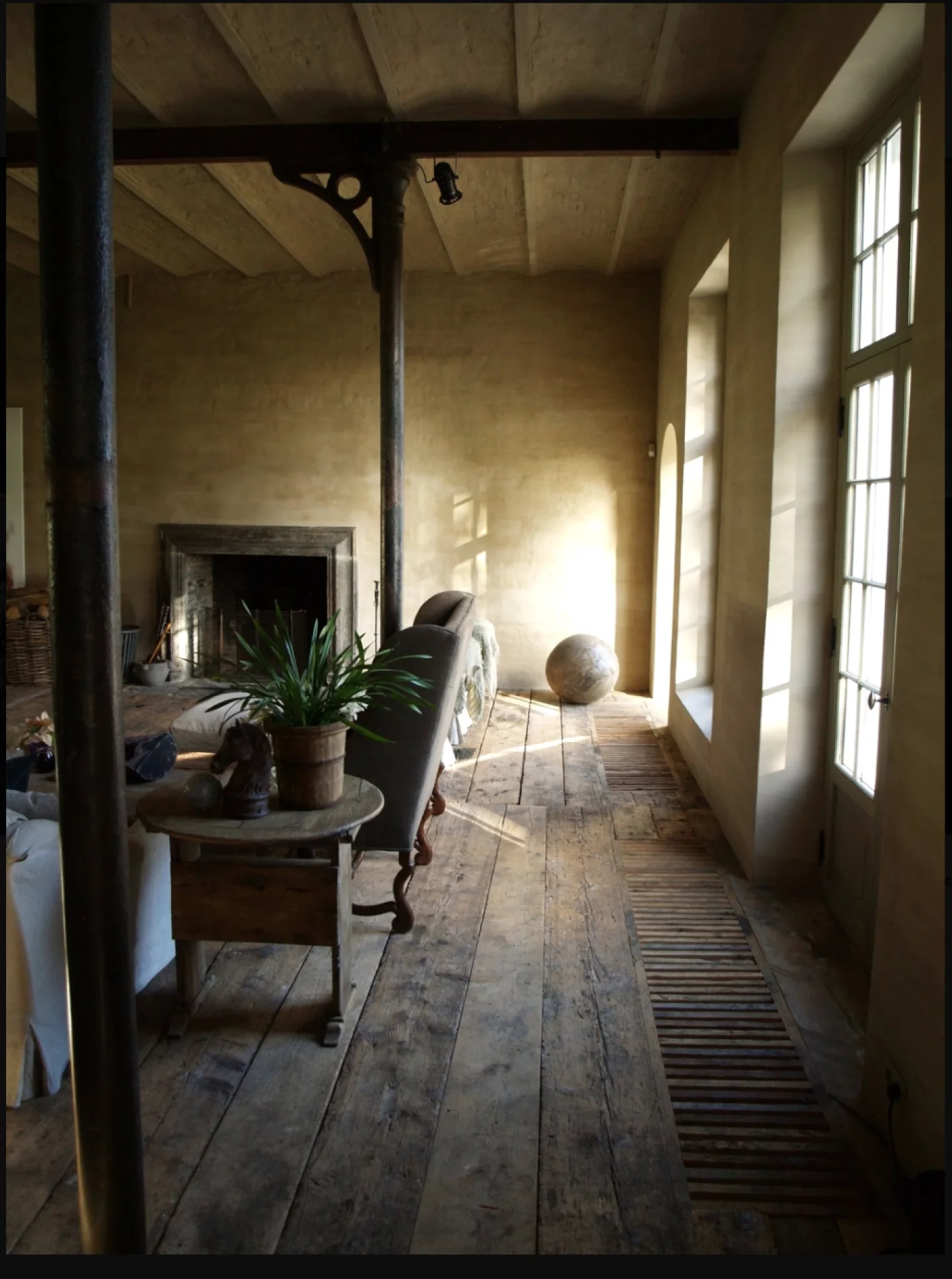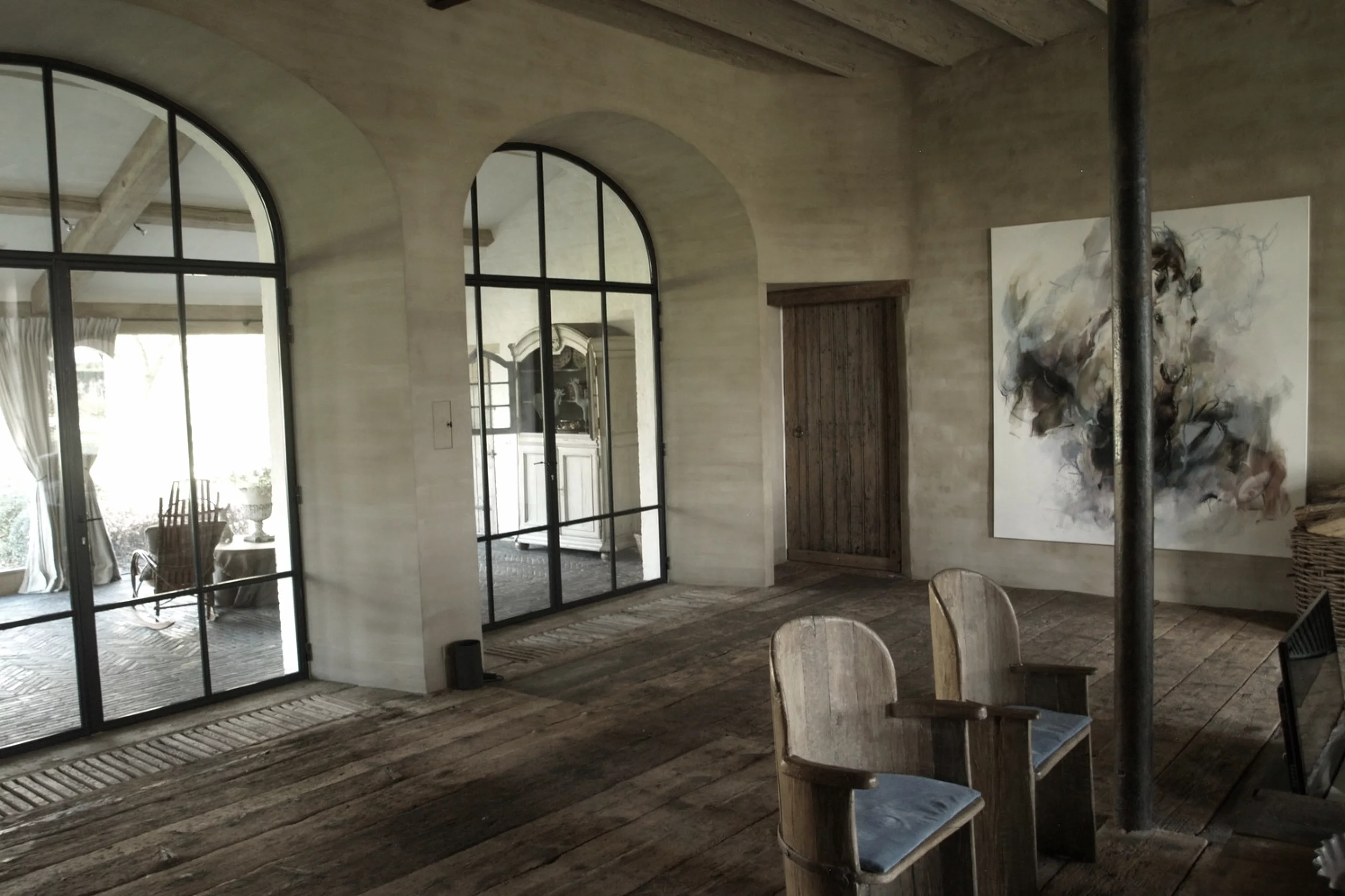 In de fotos ziet U de toepassing van oude eiken planken door de Belgische top-architect Bernard de Clerck.