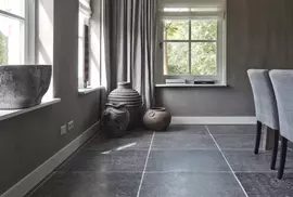 La Bourse is onze manueel verouderde vloer van Belgisch hardsteen. Deze arduin vloer geeft een authentieke uitstraling aan uw interieur door de vele kleurschakeringen en de manuele afwerking waarbij we verschillende afwerkingstechnieken gecombineerd hebben om de blauwsteen vloer extra karakter te geven.