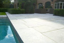 Deze mooie terrasvloer van Belgisch hardsteen is onze trots. Deze arduin terrastegels worden door ons manueel verouderd en zijn 3 cm dik en vorstbestendig. De authenticiteit van deze tegels zorgt voor een hele mooie uitstraling.