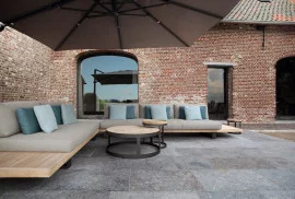 Door de zon en de regen zullen de blauwsteen vloeren altijd vergrijzen en door er op te leven, te belopen, te bbq'en ontstaat een hele mooie patine met karakter.
