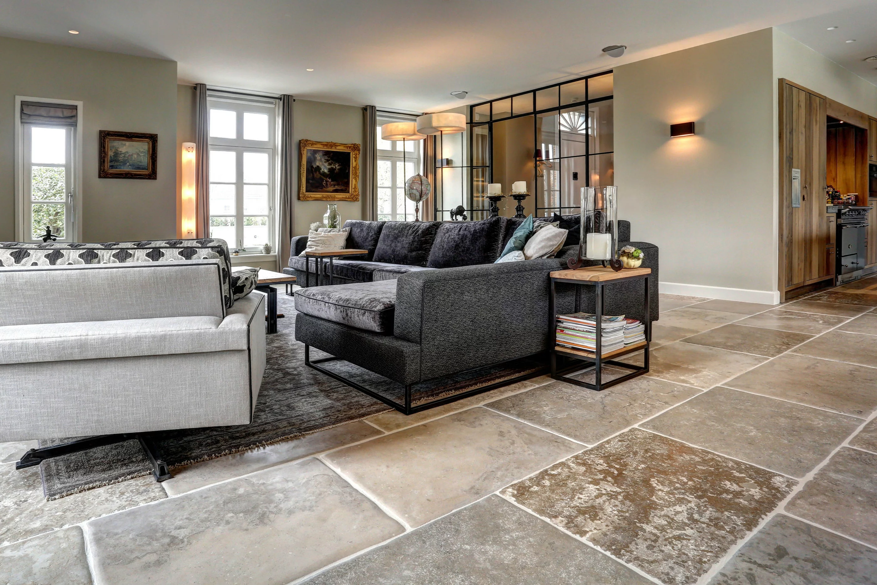 Deze kalkstenen vloer is praktisch in gebruik, vlekbestendig en eenvoudig schoon te houden. Ideaal voor nieuwbouw of renovatie van landelijke, klassieke of moderne interieurs. Door de rustige kleurschakering past hij harmonieus bij bijvoorbeeld eiken vloeren of natuurmaterialen.