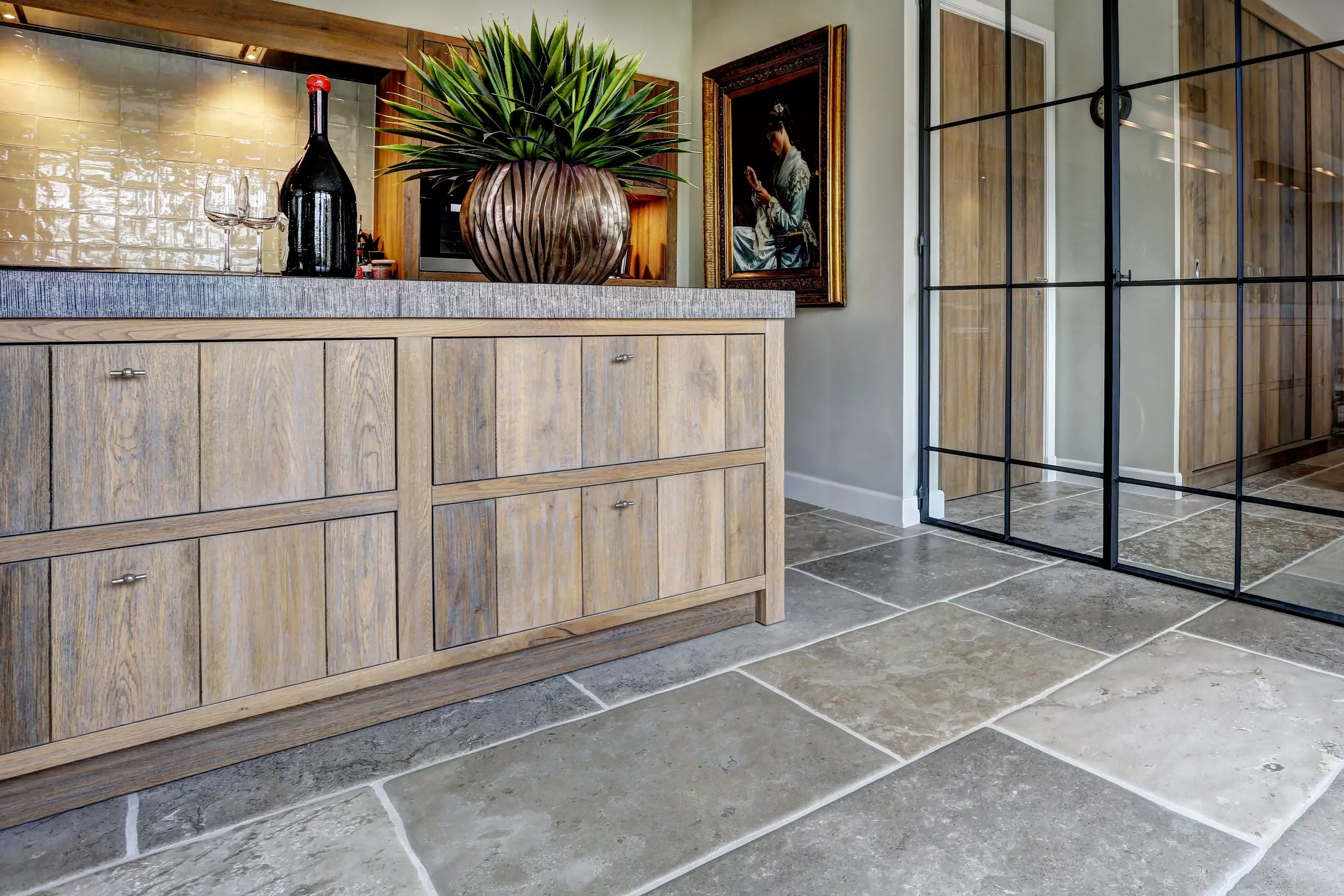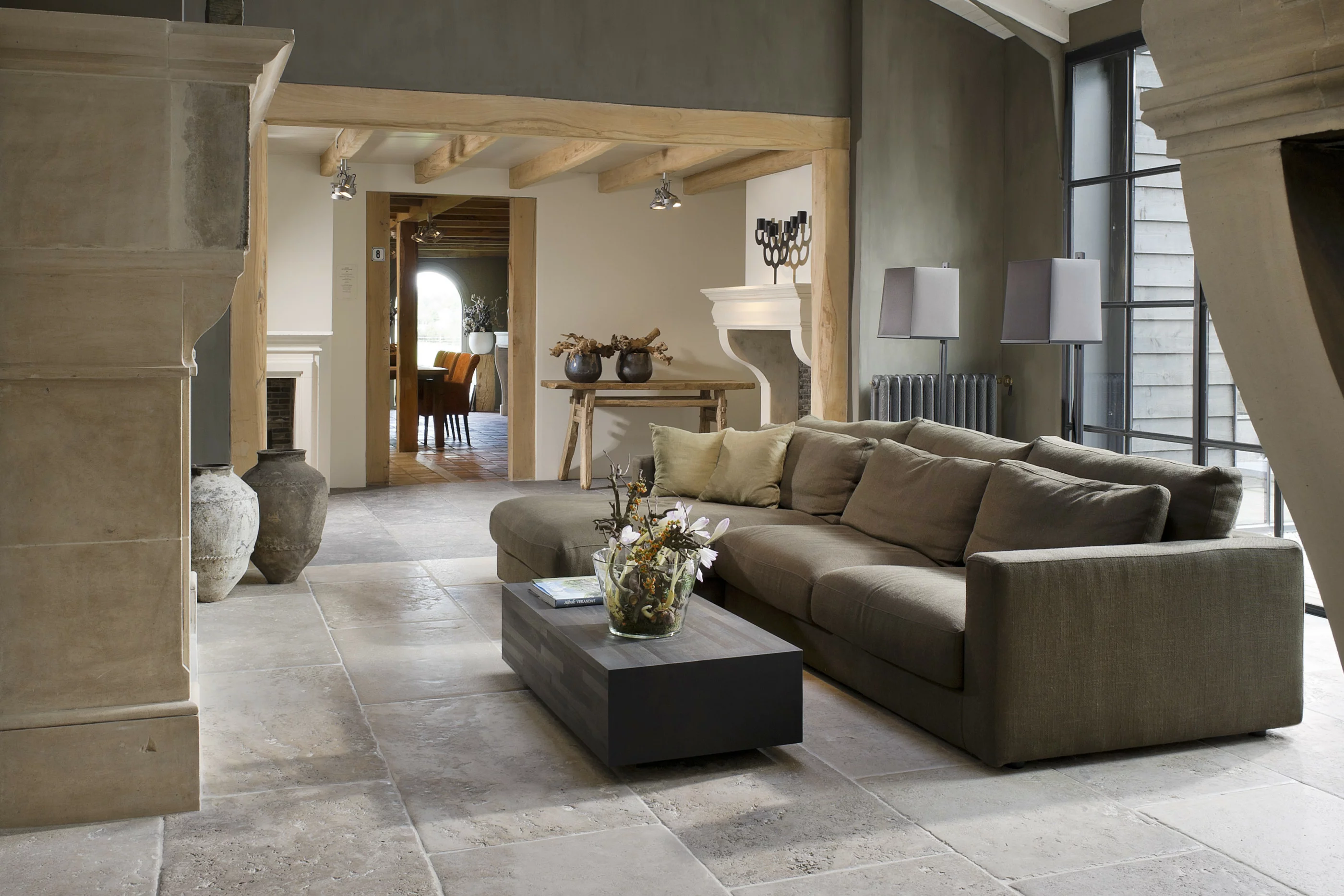 Deze karaktervolle natuurstenen vloer wordt vervaardigd uit kalksteen uit de Bourgogne. De tegels worden in ons atelier handmatig verouderd, waardoor ze de uitstraling krijgen van authentieke natuursteenvloer. Dankzij de warme beigetinten met een subtiele grijze schakering is deze vloer makkelijk te combineren in uiteenlopende interieurs.