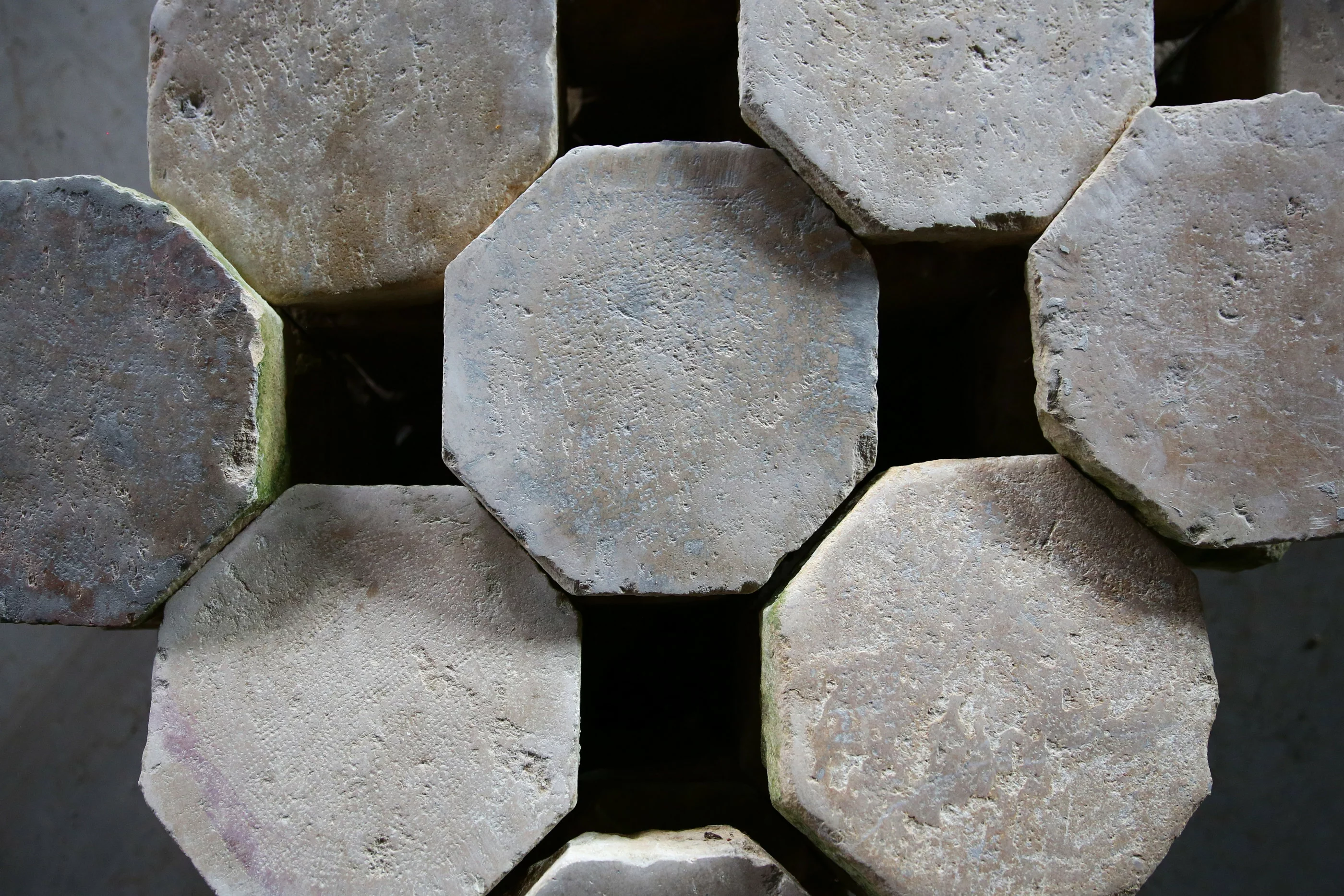 Wij hebben een prachtige partij antieke bourgondische octogonale dallen in onze collectie! Deze partij is exclusief door de vorm en formaat en kom je maar weinig tegen! Een octogonale dal heeft 8 zijden. De kleurstelling is beige genuanceerd en straalt veel warmte uit. Op de foto's zie je de structuur van de Franse dal heel goed. De originele dikte is 10 cm, maar dit kan terug gebracht worden naar 3 cm, zodat ze geschikt zijn om te leggen. Een prachtige authentieke dal met karakter en uitstraling!