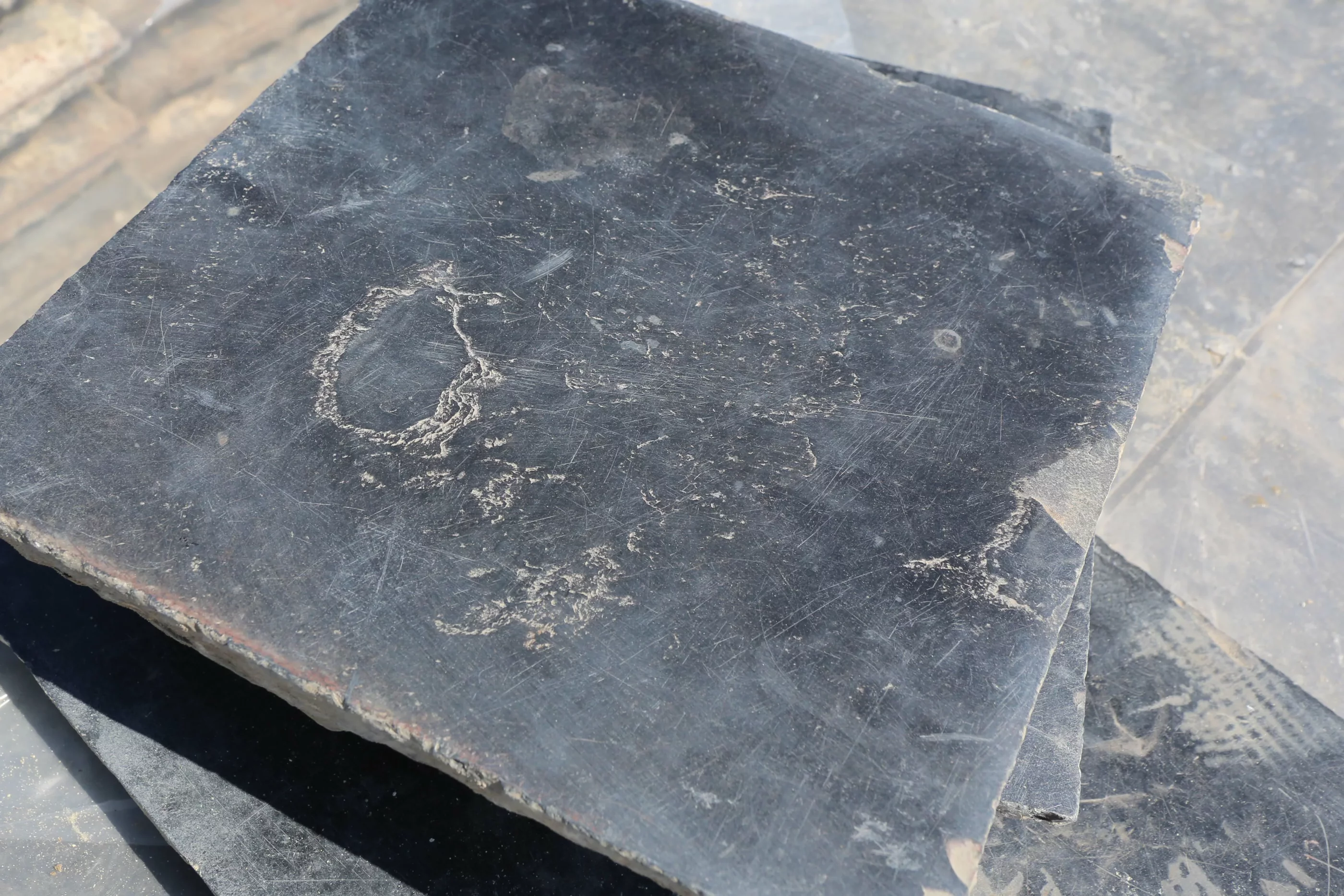 Wij hebben vaak diverse partijen mooie antieke kerkdallen uit kerken en/of kloosters. De kleur is donkergrijs/zwart genuanceerd en bevat geen fossielen, in tegenstelling tot onze blauwsteen dallen. Deze vloer geeft een authentieke uitstraling aan uw vloer en is werkelijk prachtig als deze eenmaal gelegd is. Een vloer die tijdloos is en levenslang meegaat.