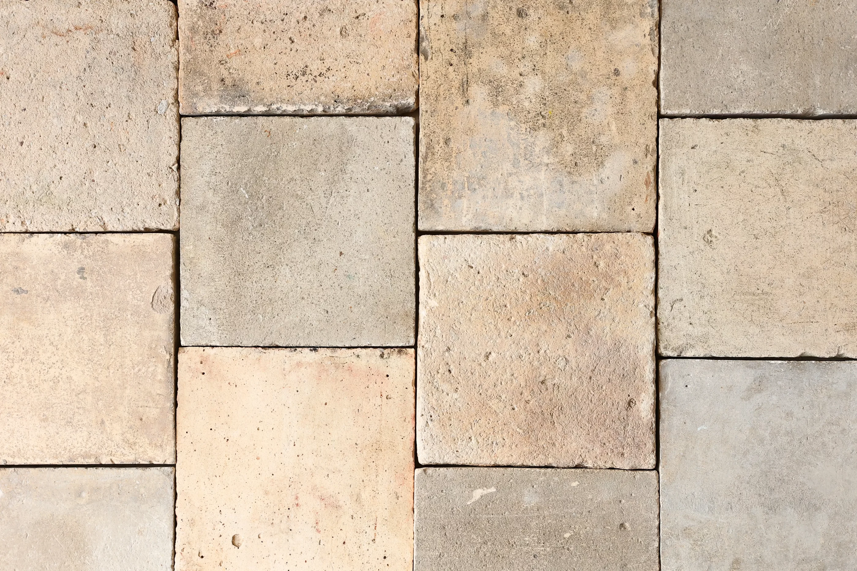 Deze oude Franse terracotta tegels zijn met de hand gemaakt in de 18e en 19e eeuw en afkomstig uit boerderijen, landhuizen en manoirs in Frankrijk en Italië. Onze vakmensen halen deze vloeren zorgvuldig uit en reinigen elke tegel met de hand in onze werkplaats. Daarna worden ze gesorteerd op kleur en formaat.