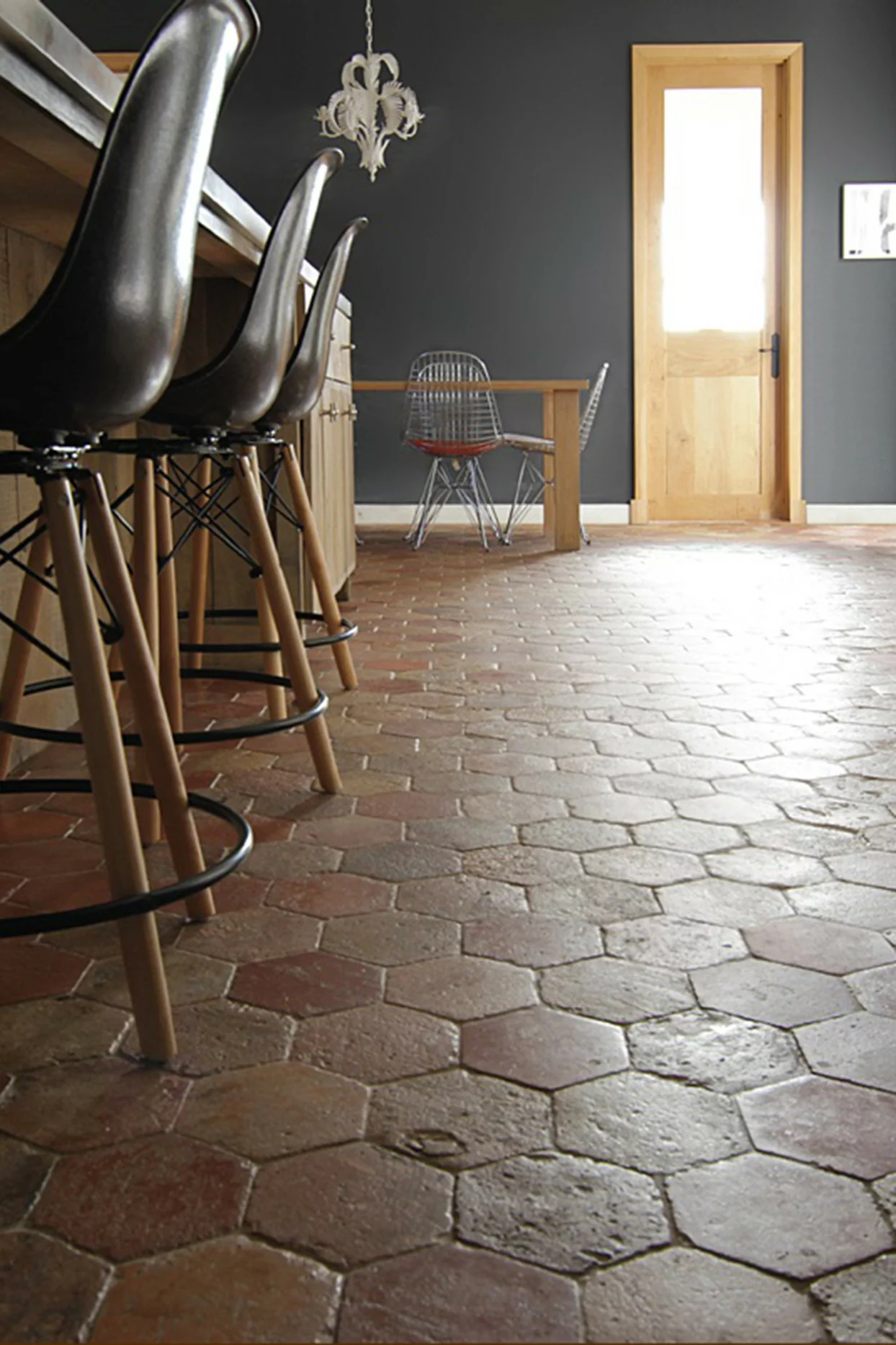 Hexagon betekent zeshoek en dat geeft meteen aan hoe het uiterlijk van deze mooie plavuis eruitziet. Het patroon wordt ook wel honingraat genoemd. De hexagonale plavuizen zijn in diverse kleurtinten verkrijbaar. Deze vloer zorgt net even voor een andere uitstraling aan uw interieur!